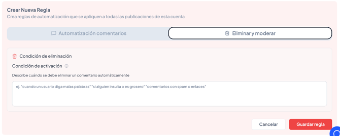 Dentro de la automatización global también puedes usar Eliminar y moderar.