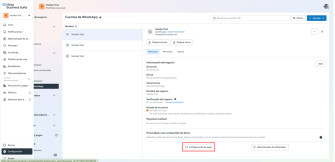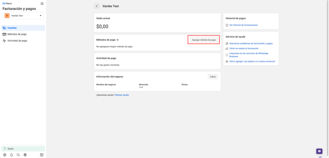 Parte 1 — Agregar un método de pago a tu cuenta de WhatsApp API