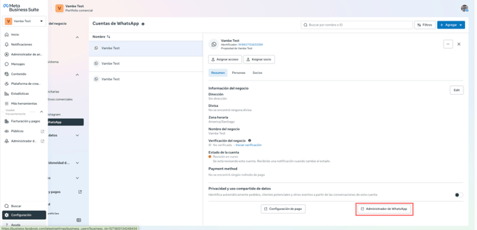 4. Seleccionar la cuenta y luego en Administrador de Whatsapp