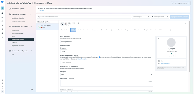 Parte 2 — Configurar el perfil del número en WhatsApp Manager