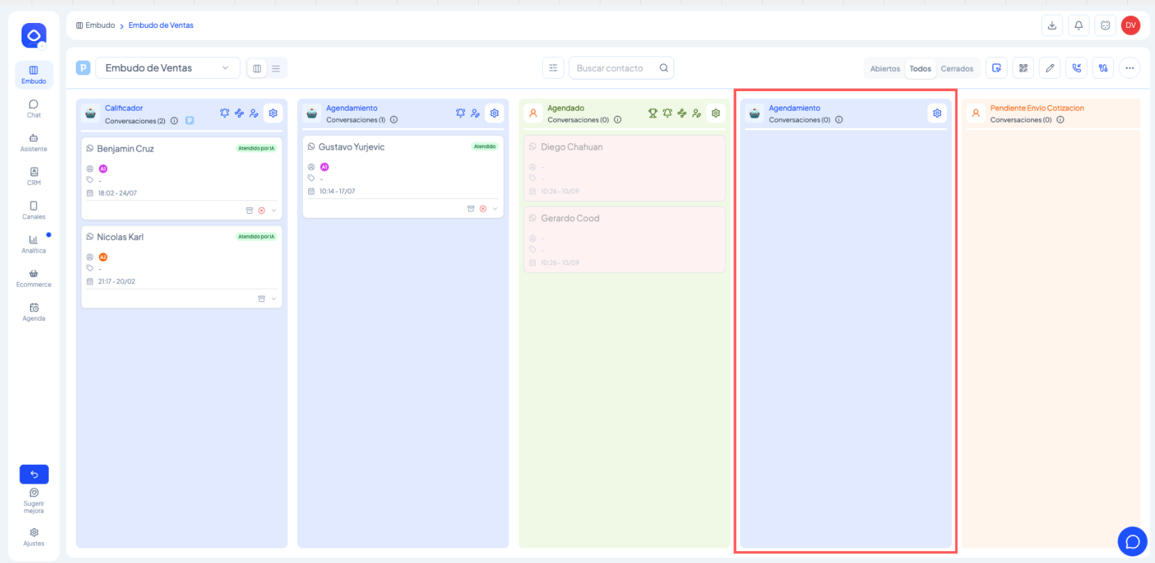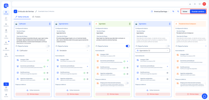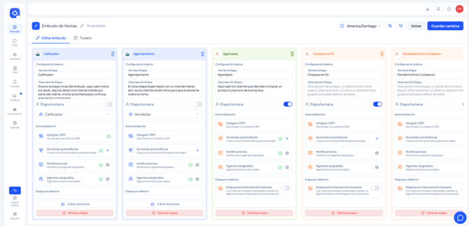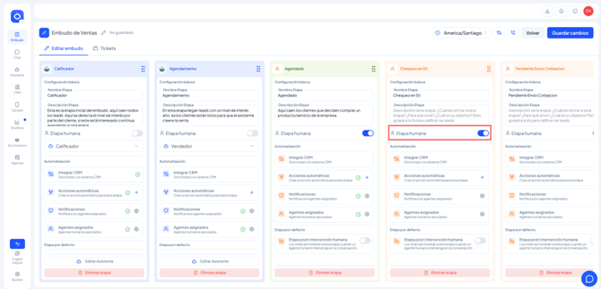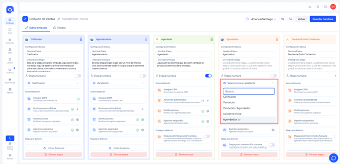 Dirigirse al embudo donde se encuentra la etapa que queremos asignar un asistente.