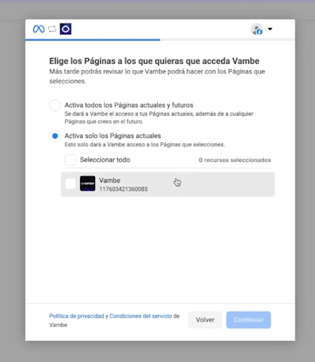Verifica que estás utilizando la cuenta correcta de Facebook, es decir, aquella que administra la página cuyos mensajes deseas conectar.