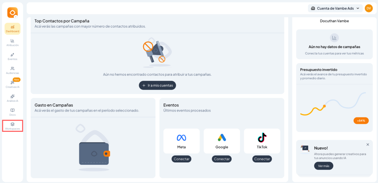 En este artículo aprenderás cómo conectar correctamente Meta Ads (Facebook e Instagram Ads) a Vambe Ads, un paso fundamental para poder gestionar campañas, cuentas publicitarias y atribución de eventos desde un mismo lugar.
