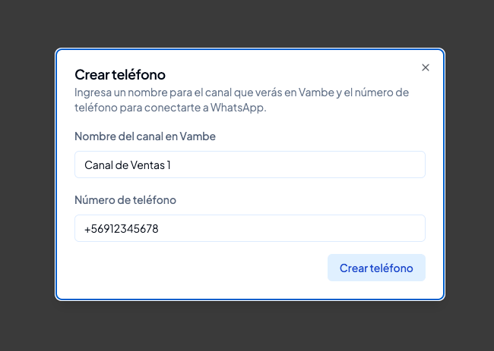 Debes colocar el Nombre del canal en Vambe y Número de teléfono