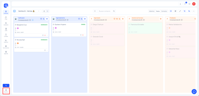 • Puede modificar la inteligencia artificial, automatizaciones, embudos, asistentes y configuraciones avanzadas.