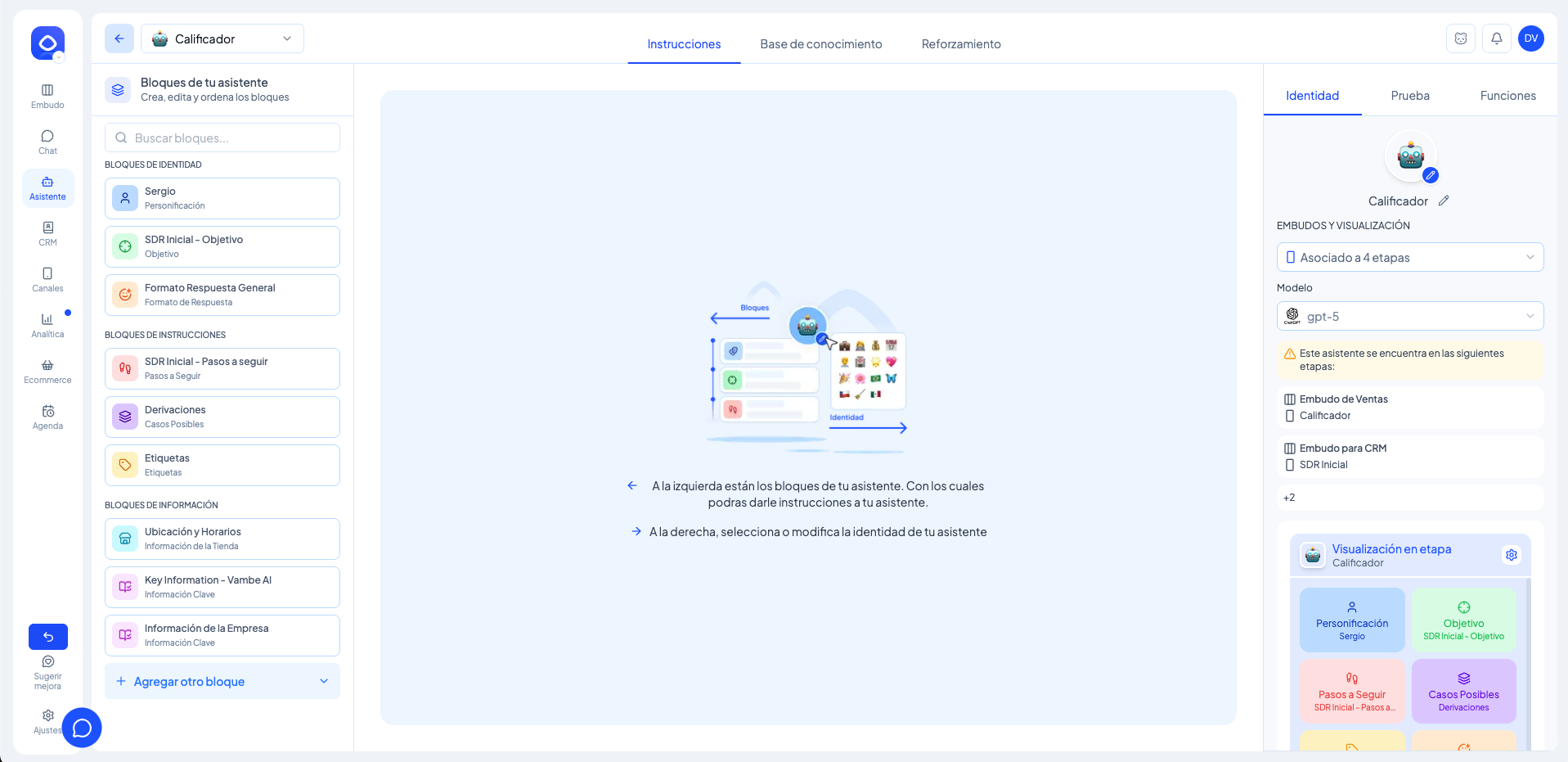 Una vez realizado este último paso, estarás dentro del asistente asociado a esa etapa y podrás modificar sus bloques, funciones e instrucciones.
