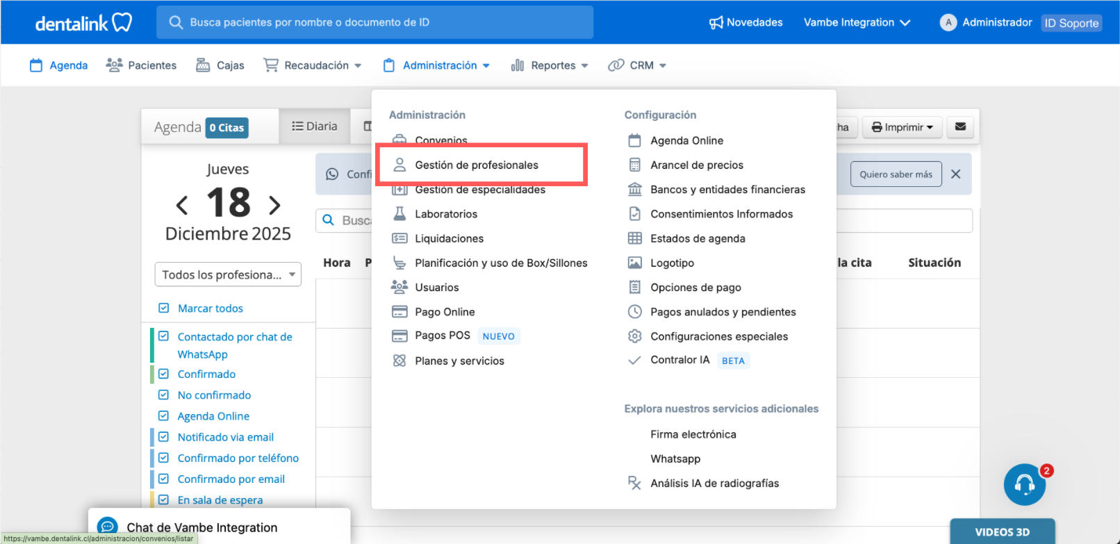 Ingresa a tu cuenta de Dentalink con usuario administrador.