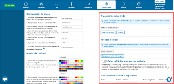 Agendas disponibles → los horarios y profesionales que estarán visibles en Vambe.