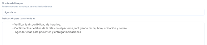 En este artículo aprenderás a crear y configurar el asistente de agendamiento, que es el encargado de buscar disponibilidad, confirmar datos del paciente y agendar una cita de forma automática.