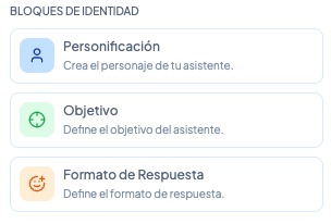 Estos tres bloques no pueden repetirse, ya que conforman la identidad central del asistente.